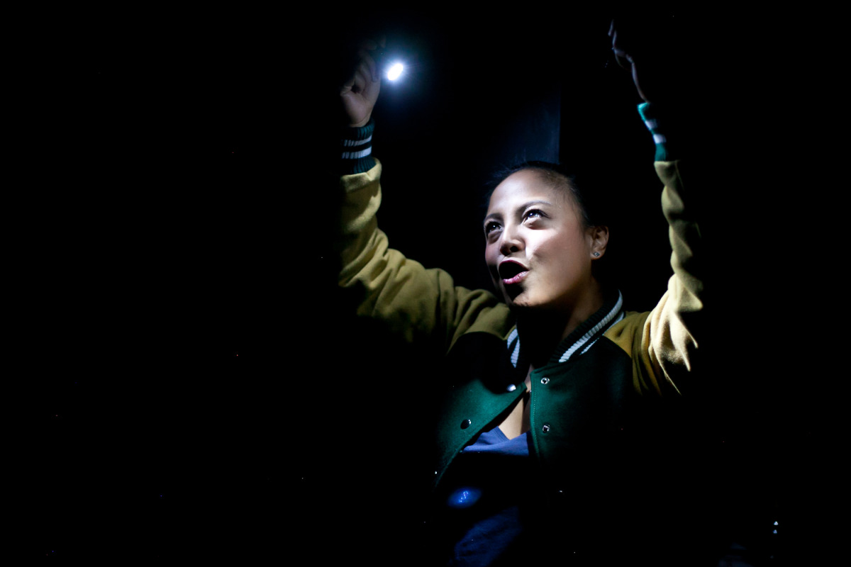 Randle’s direction makes imagination literal. Flashlights create both undersea plunges and starry nights. The set, by Randle, is like a collection of building blocks: characters transform it into everything from roaring ocean waves to an imposing gate to a scientific lab on the moon. "